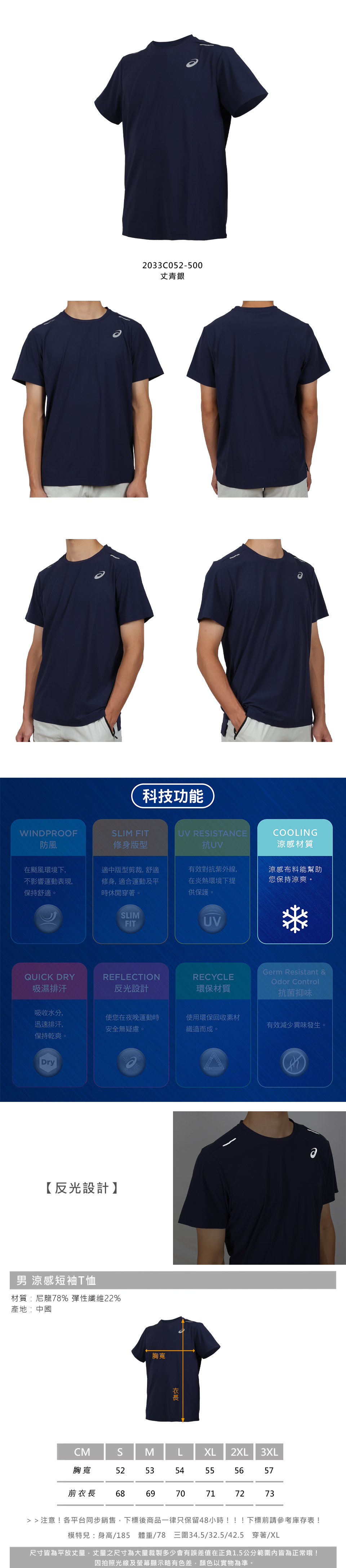 ASICS 男款涼感短袖T恤  2033C052-500 - 丈青銀