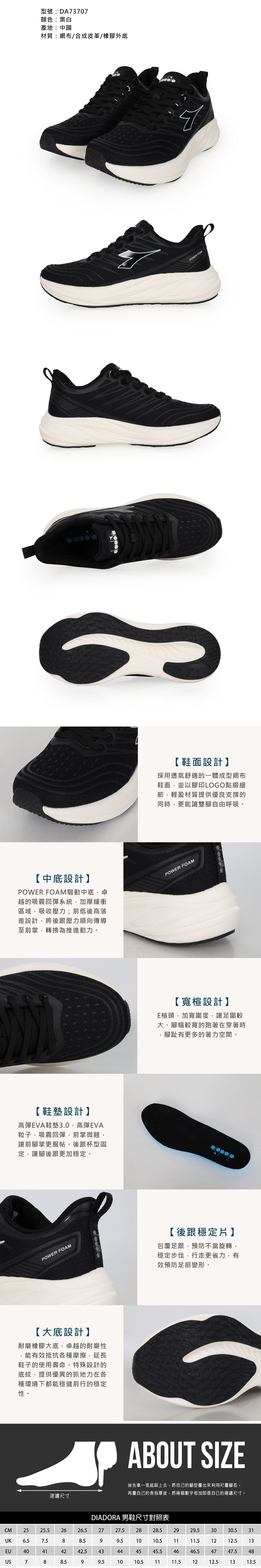 DIADORA 男款勁速避震慢跑鞋-E  DA73707 - 黑白