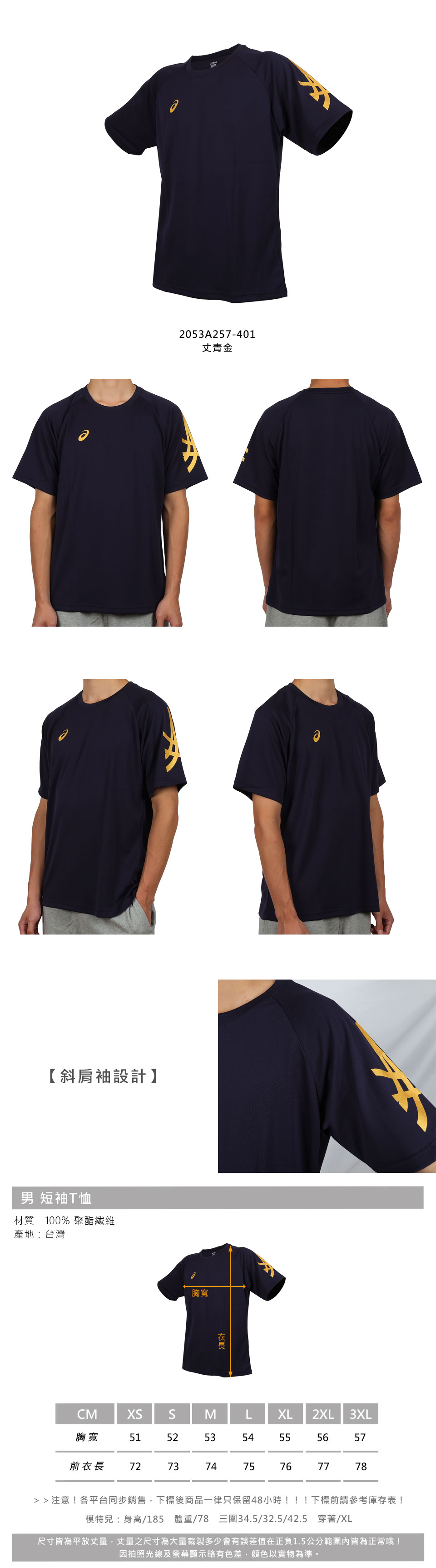 ASICS 男款短袖T恤  2053A257-401 - 丈青金