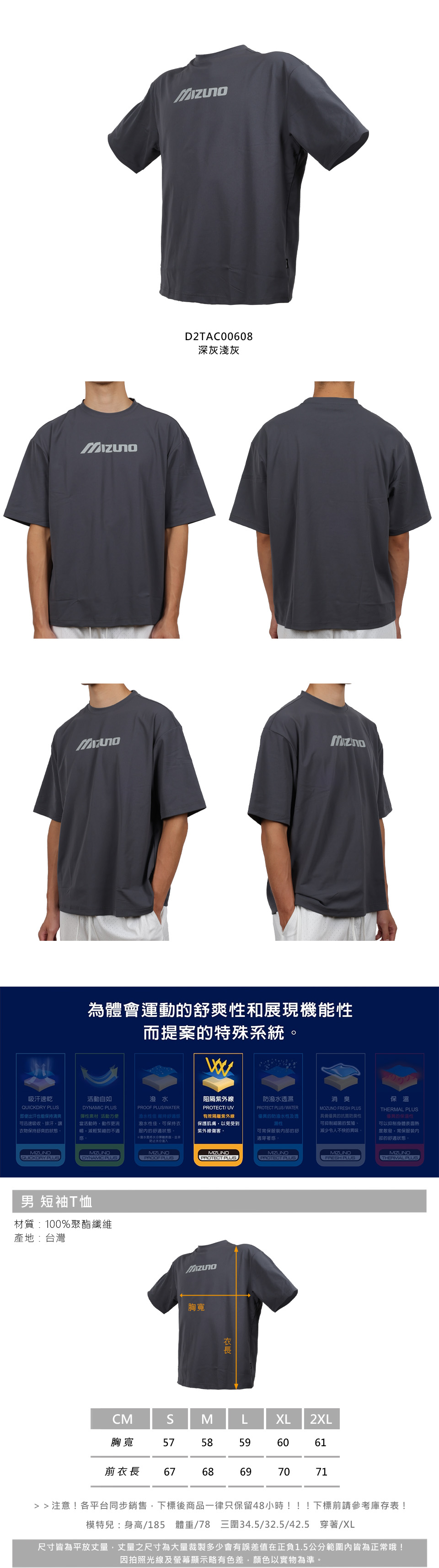 MIZUNO 男款短袖T恤  D2TAC00608 - 深灰淺灰