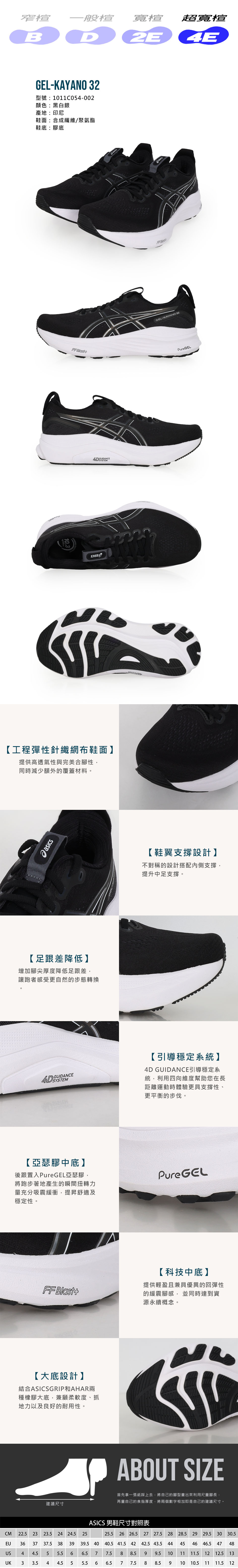 ASICS 男款支撐慢跑鞋-4E  @GEL-KAYANO 32@ 1011C054-002 - 黑白銀