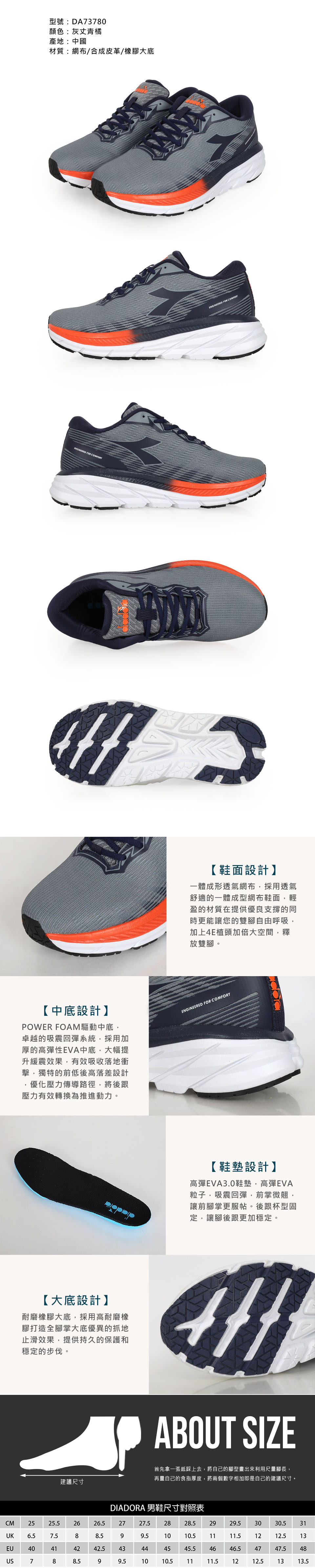 DIADORA 男款轟雷避震慢跑鞋-4E  DA73780 - 灰丈青橘