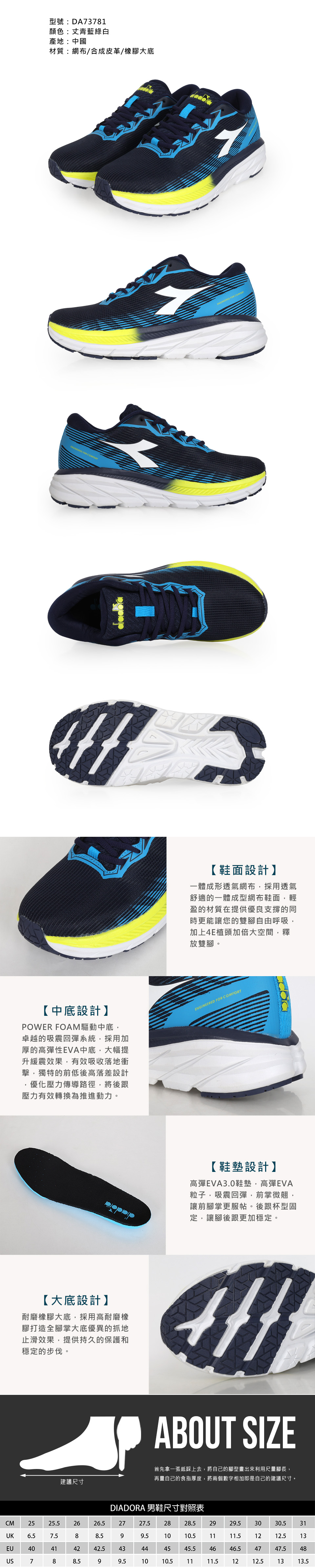 DIADORA 男款轟雷避震慢跑鞋-4E  DA73781 - 丈青藍綠白