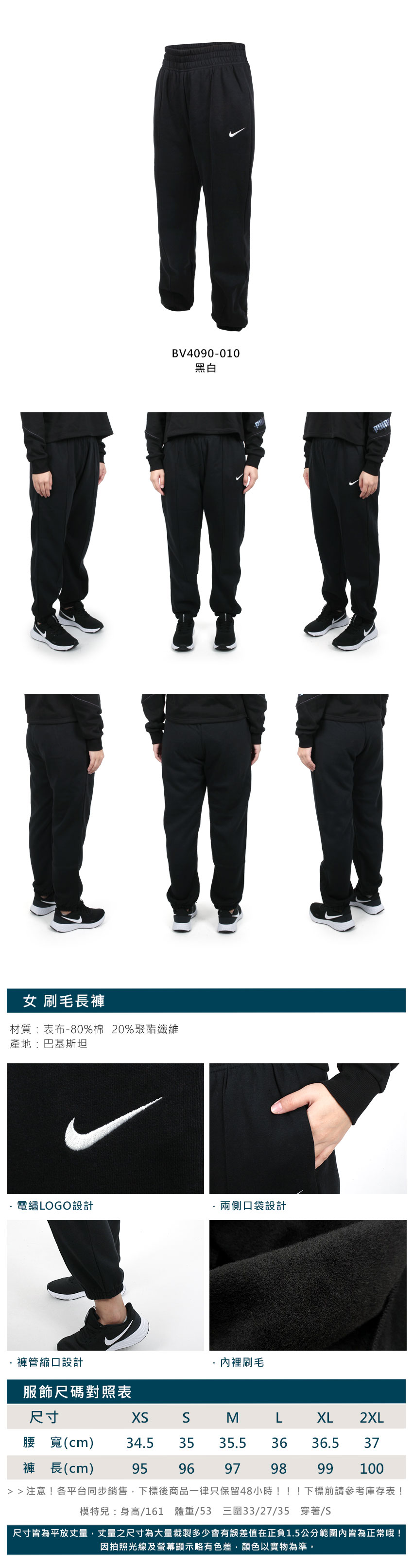 NIKE 女款刷毛長褲 BV4090-010 - 黑白