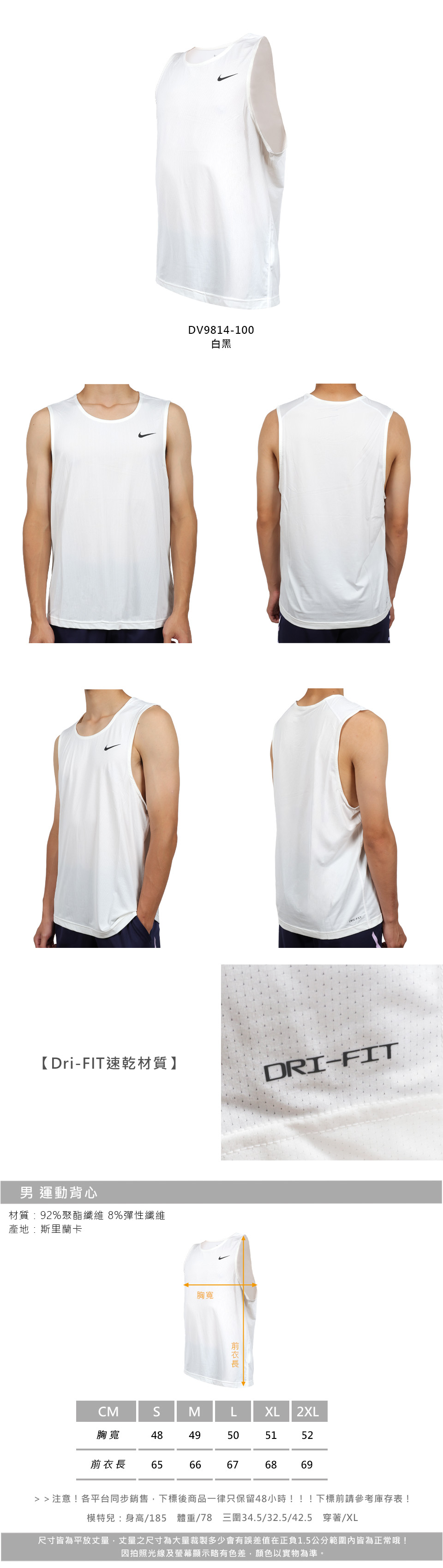 NIKE 男款運動背心  DV9814-100 - 白黑