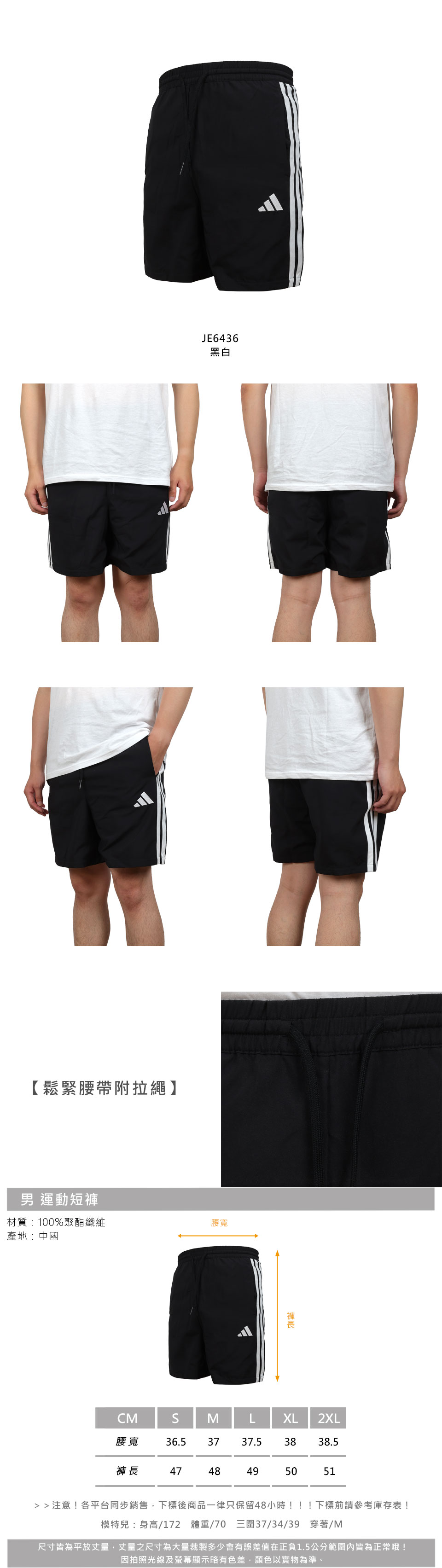 ADIDAS 男款運動短褲  JE6436 - 黑白