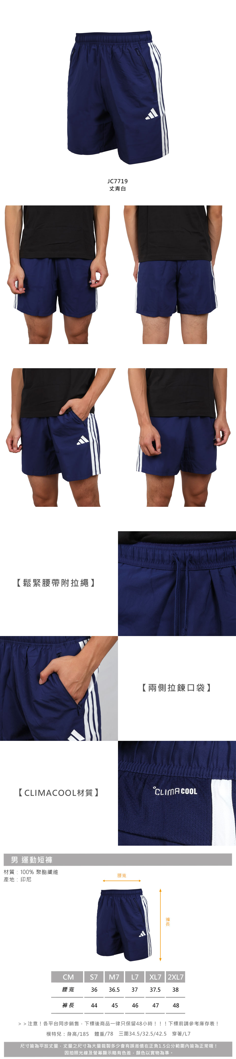 ADIDAS 男款運動短褲  JC7719 - 丈青白