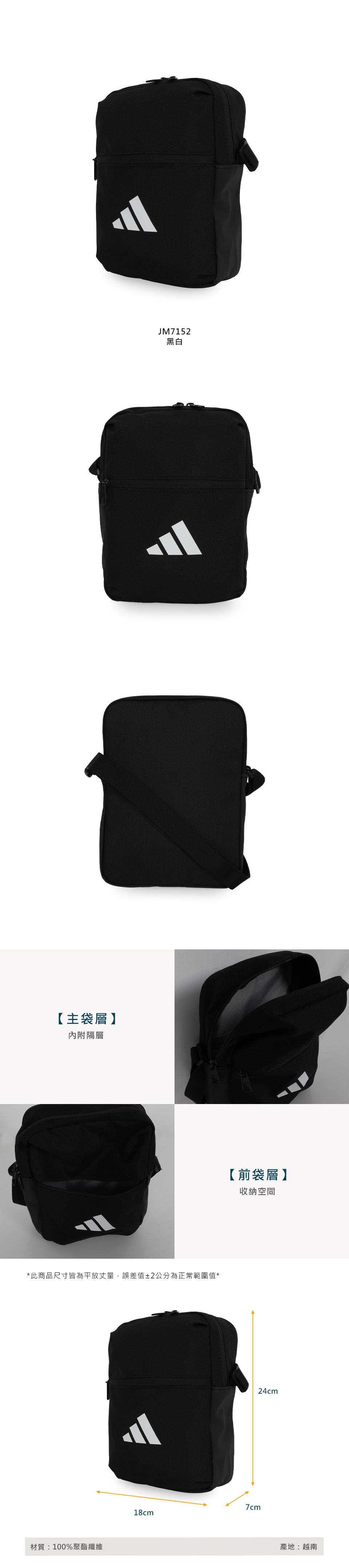 ADIDAS 小型斜背包  JM7152 - 黑白