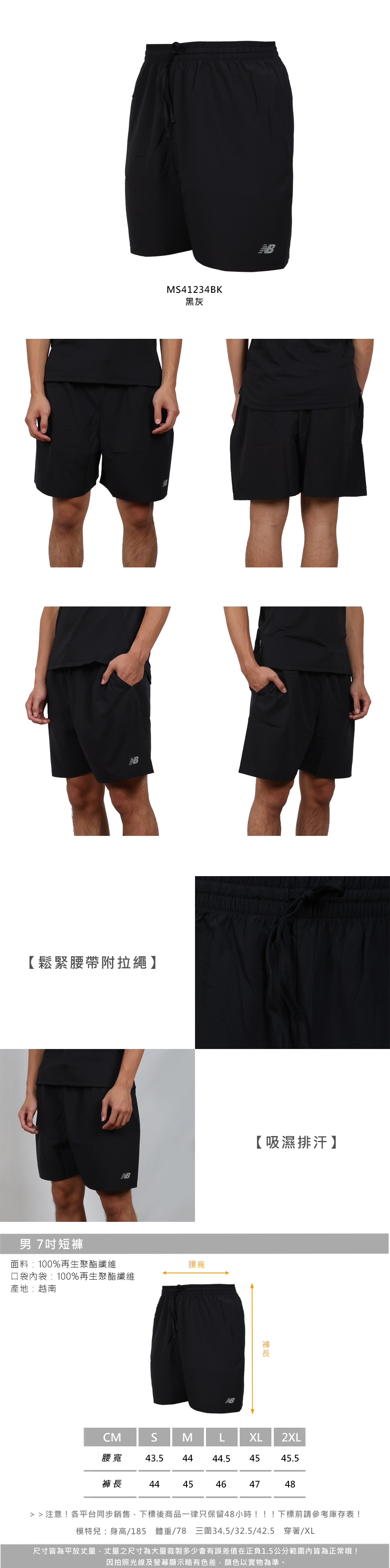 NEW BALANCE 男款7 吋短褲 MS41234BK
