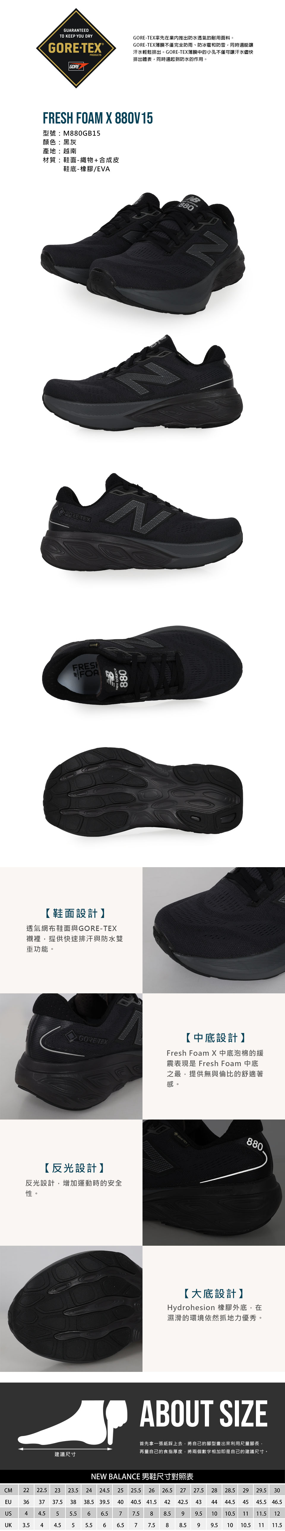 NEW BALANCE 男款防水緩震慢跑鞋-2E  M880GB15 - 黑灰