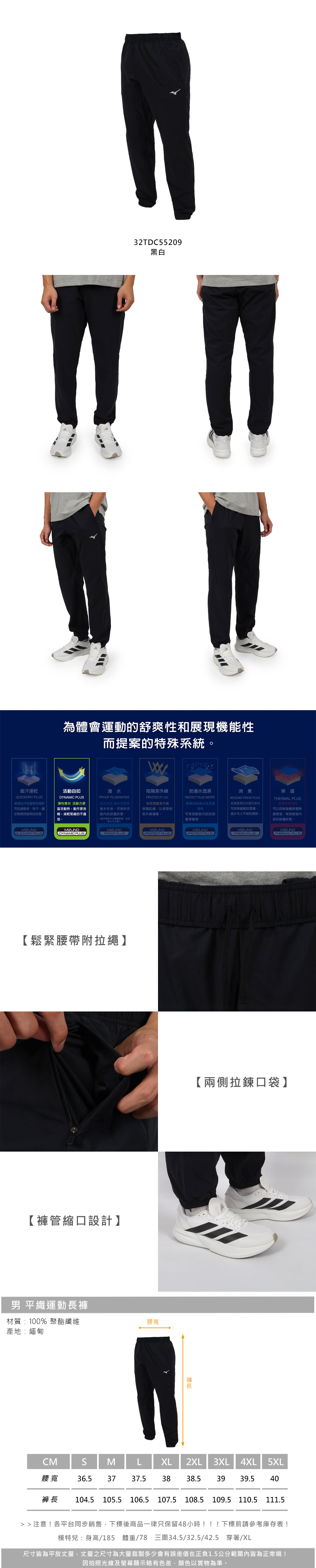 MIZUNO 男款平織運動長褲  32TDC55209 - 黑白