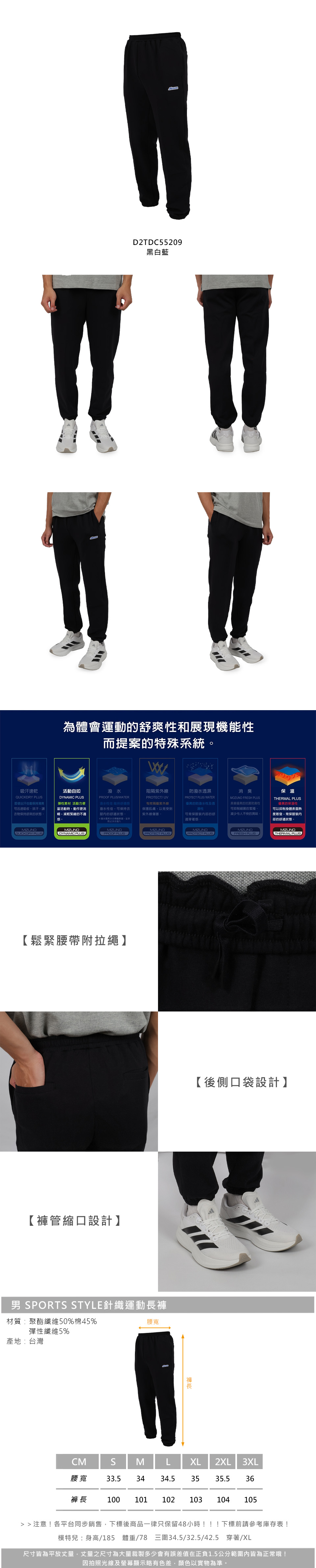 MIZUNO 男款SPORTS STYLE針織運動長褲  D2TDC55209 - 黑白藍