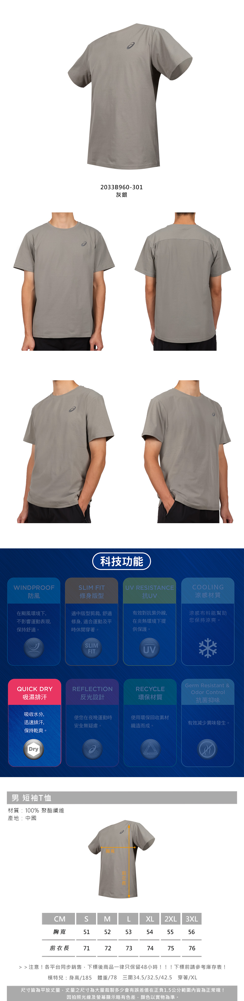 ASICS 男款短袖T恤  2033B960-301 - 灰銀
