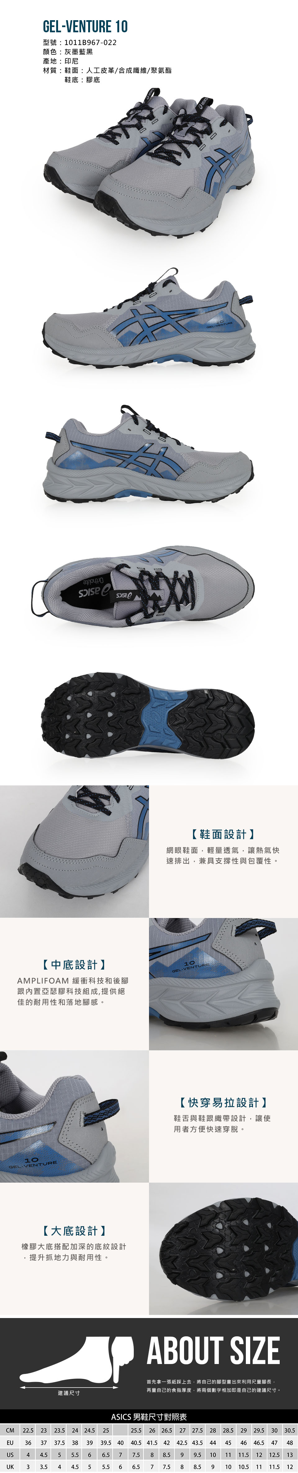 ASICS 男款越野跑鞋  @GEL-VENTURE 10@ 1011B967-022 - 灰墨藍黑