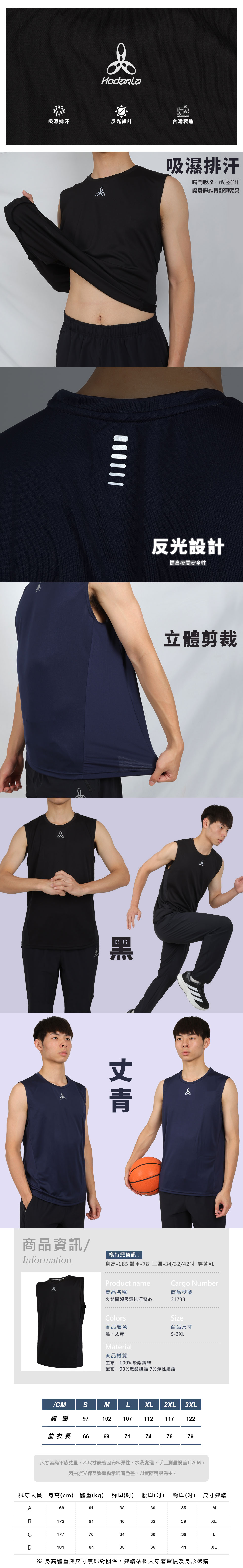 HODARLA 火焰圓領吸濕排汗背心  3173302 - 丈青