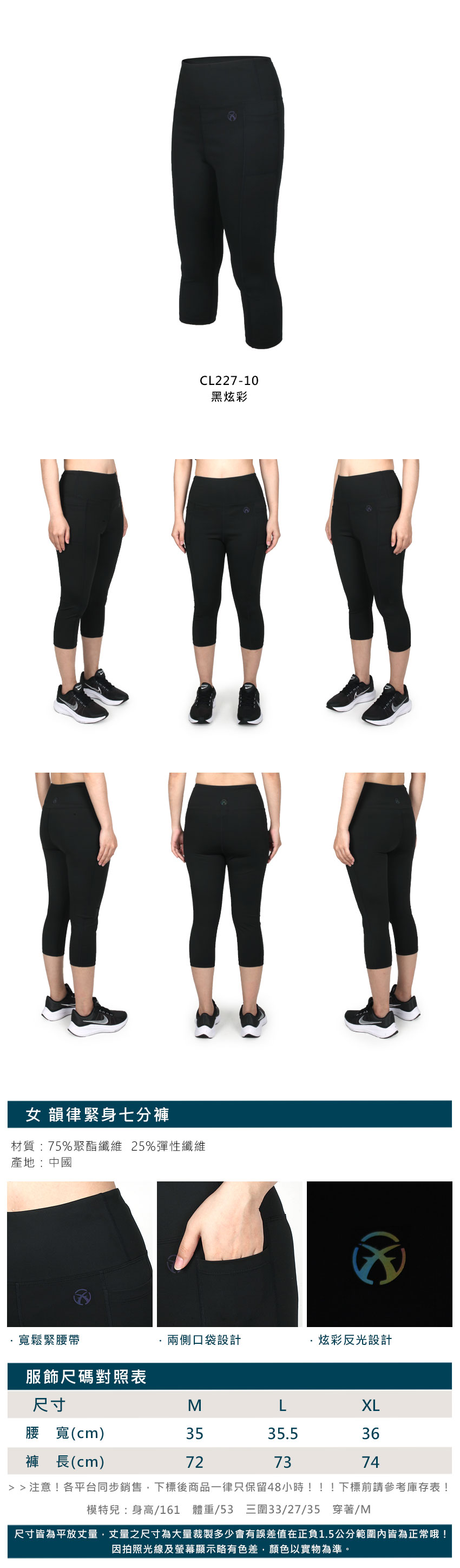 FIRESTAR 女款韻律緊身七分褲 CL227-10 - 黑炫彩