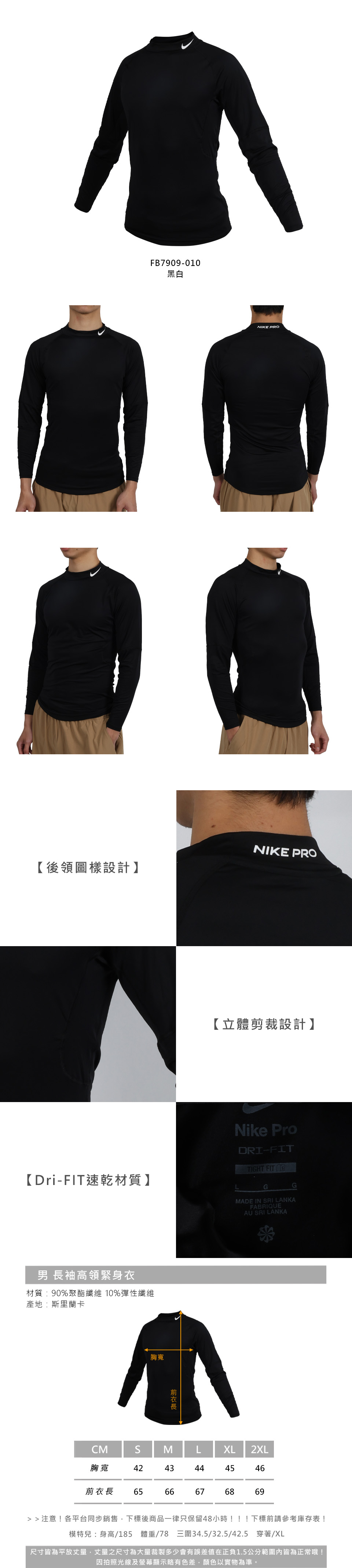 NIKE 男款長袖高領緊身衣  FB7909-010