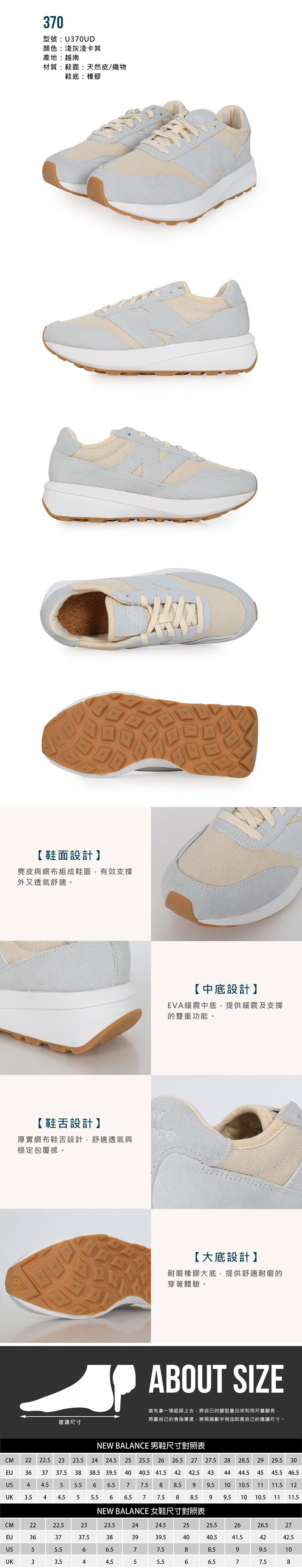 NEW BALANCE 男女款復古休閒鞋  U370UD - 淺灰淺卡其