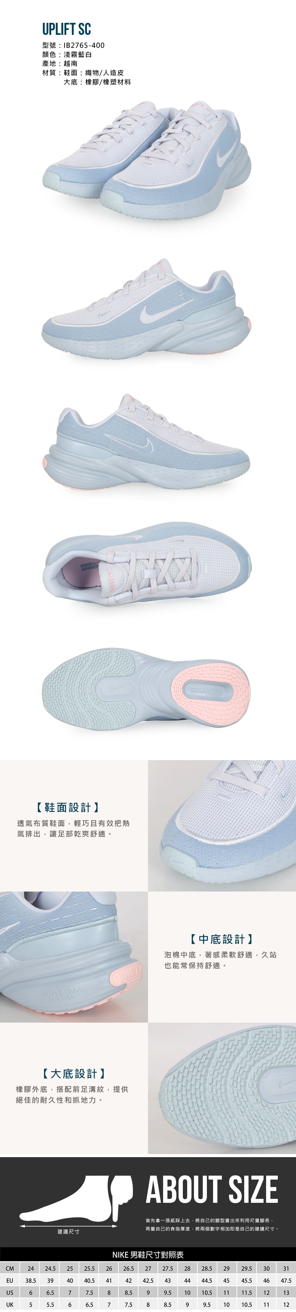 NIKE 男款休閒運動鞋  @UPLIFT SC@ IB2765-400 - 淺霧藍白