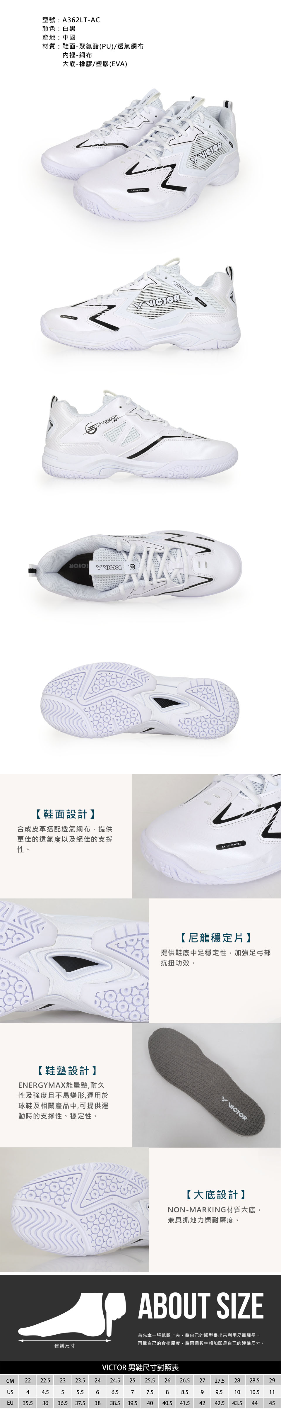 VICTOR 男款羽球鞋  A362LT-AC - 白黑