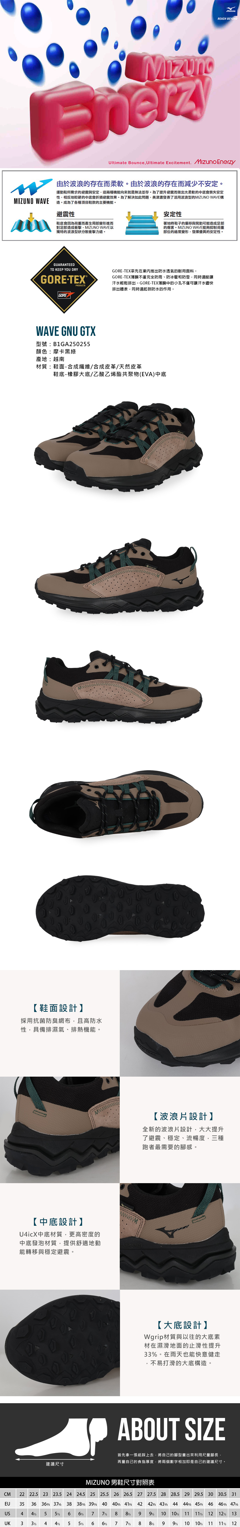 MIZUNO 男款防水健走鞋  @WAVE GNU GTX@ B1GA250255 - 摩卡黑綠