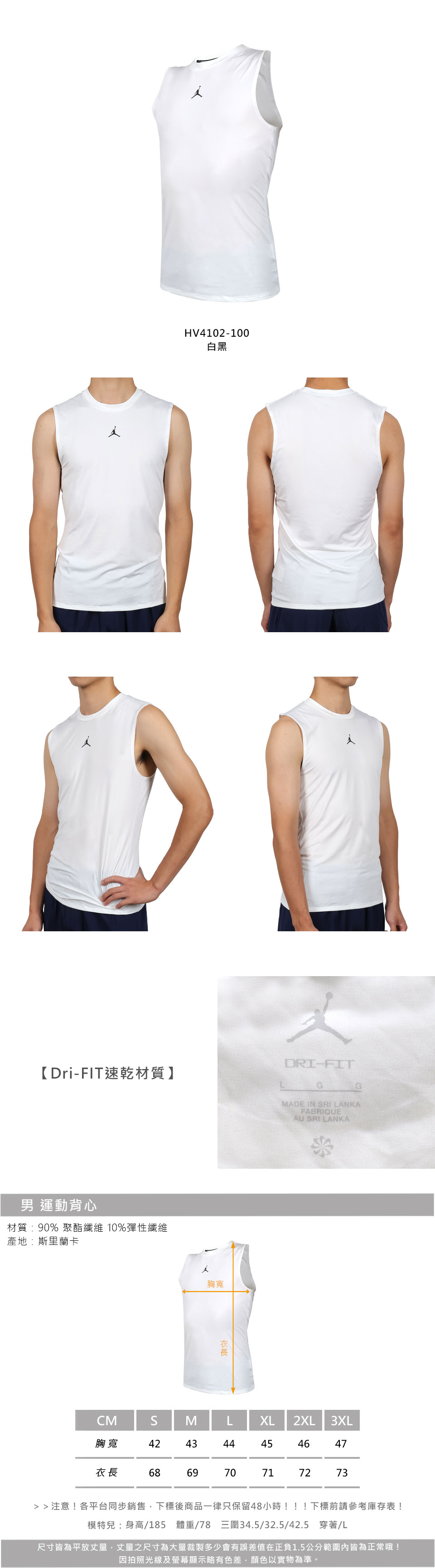 NIKE JORDAN 男款運動背心  HV4102-100 - 白黑