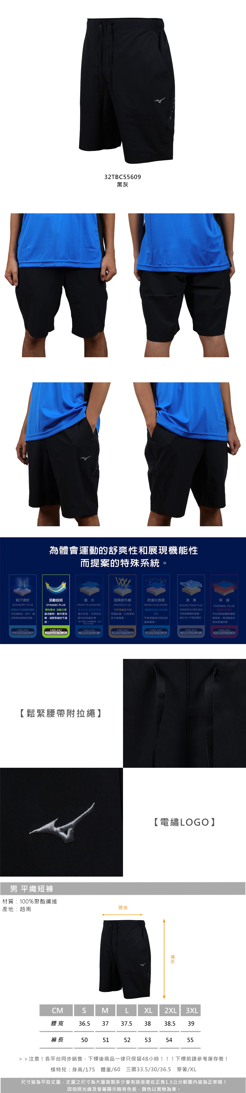 MIZUNO 男款平織短褲  32TBC55609 - 黑灰