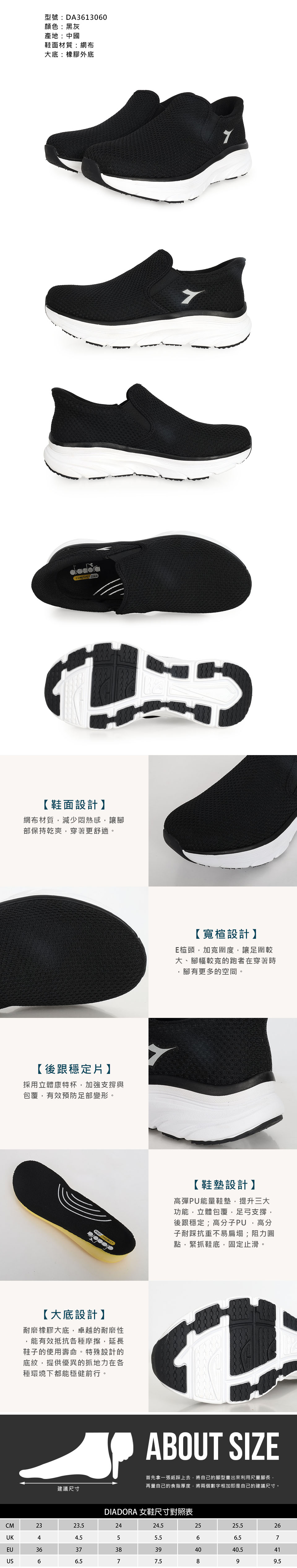 DIADORA 女款舒步減壓健走鞋-E  DA3613060 - 黑灰