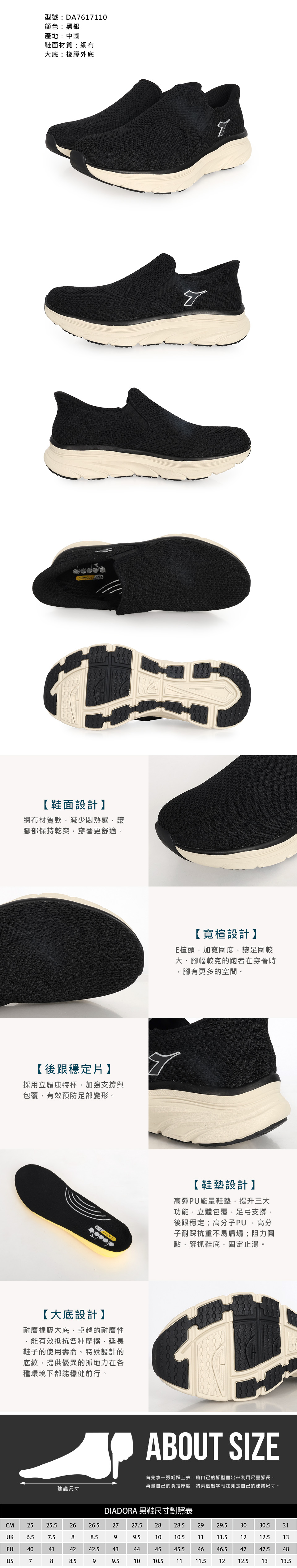 DIADORA 男款舒步減壓健走鞋-E  DA7617110 - 黑銀