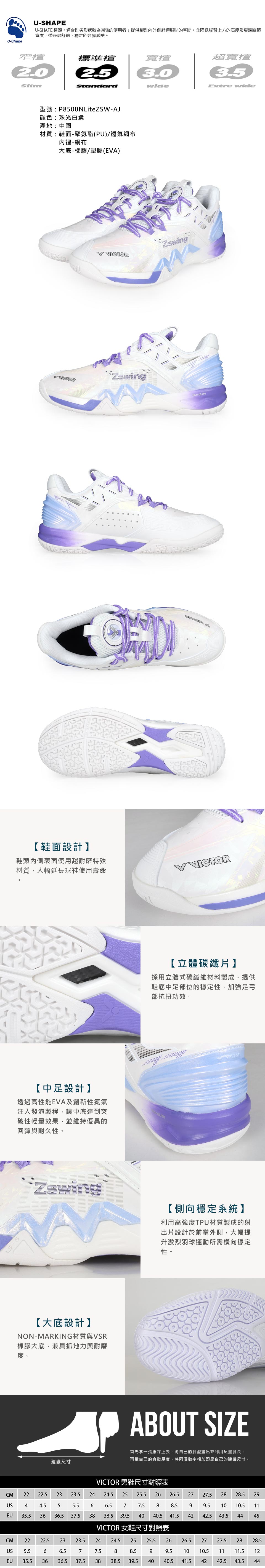 VICTOR 男女款鄭思維專屬系列羽球鞋-3E  P8500NLiteZSW-AJ - 珠光白紫