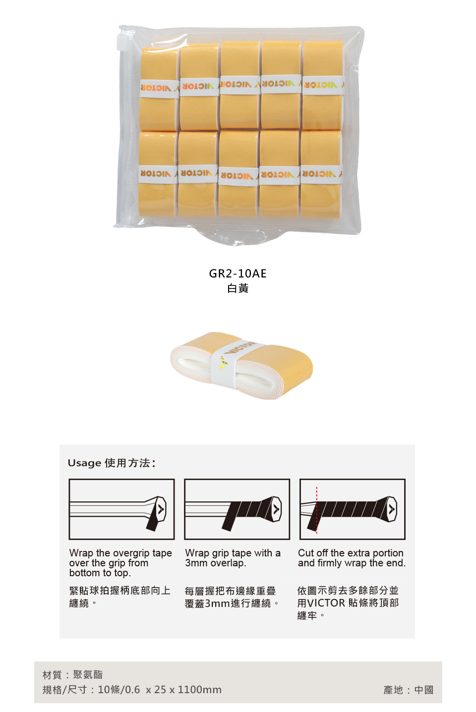 VICTOR 外握把布(10條入)  GR2-10AE - 白黃