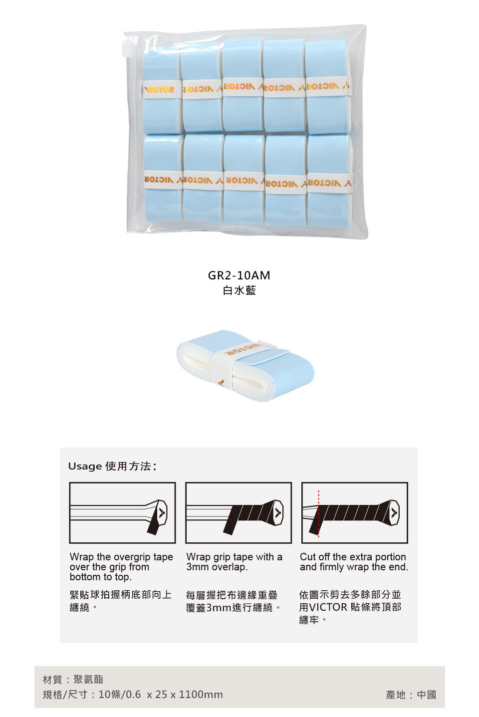 VICTOR 外握把布(10條入)  GR2-10AM - 白水藍