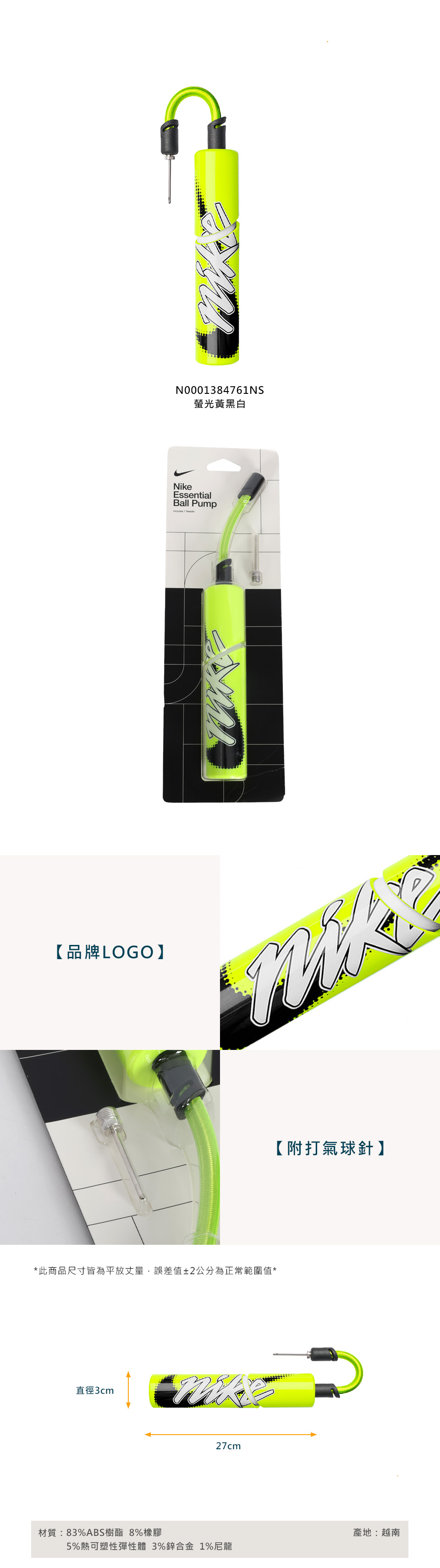 NIKE ESSENTIAL打氣筒  N0001384761NS - 螢光黃黑白