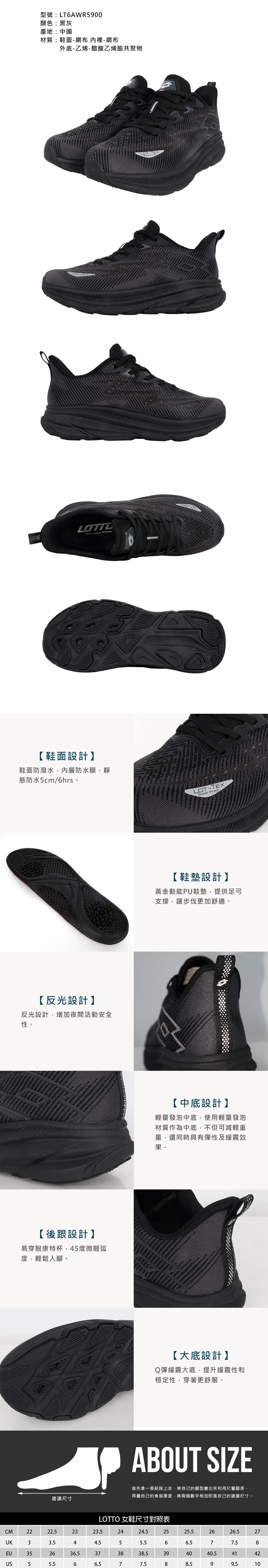 LOTTO 女款超速跑防水避震跑鞋-2E  LT6AWR5900 - 黑灰