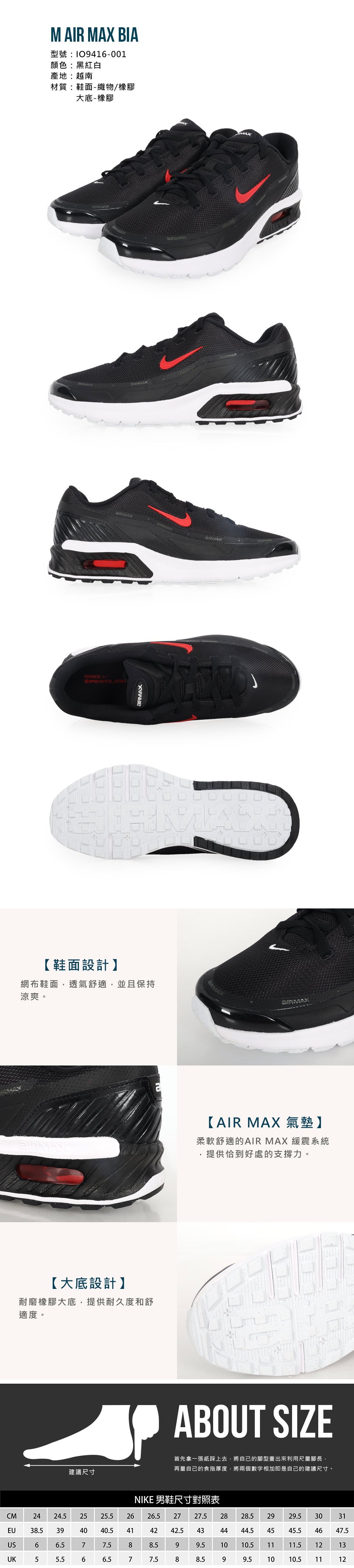 NIKE 男款氣墊慢跑鞋  @M AIR MAX BIA@ IO9416-001 - 黑紅白