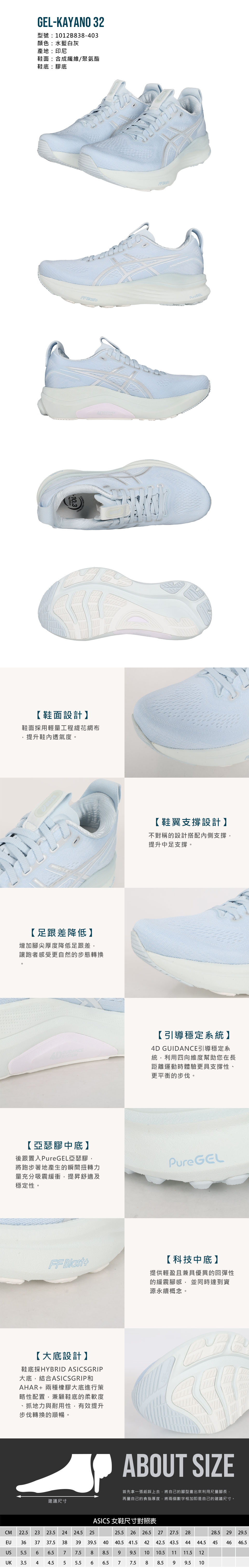 ASICS 女款支撐慢跑鞋  @GEL-KAYANO 32@ 1012B838-403 - 水藍白灰