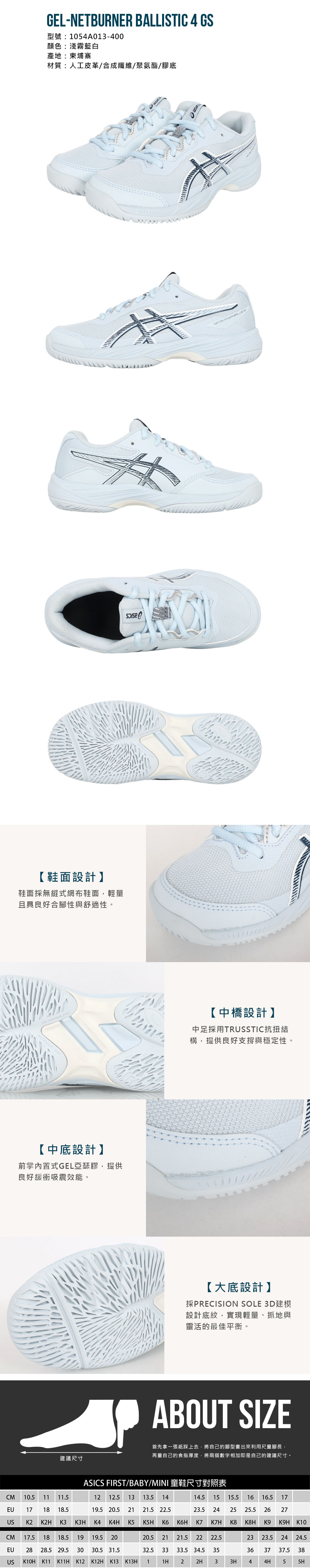 ASICS 大童排球鞋  @GEL-NETBURNER BALLISTIC 4 GS@ 1054A013-400 - 淺霧藍白
