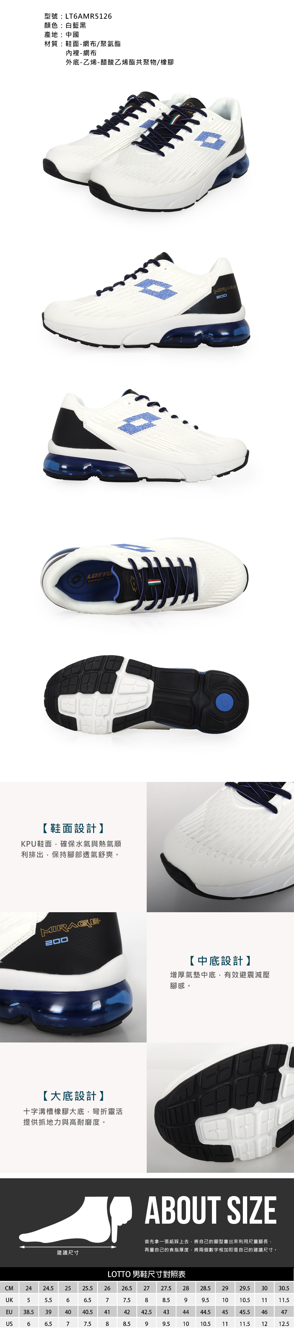 LOTTO 男款氣動KPU跑鞋-2E  LT6AMR5126 - 白藍黑