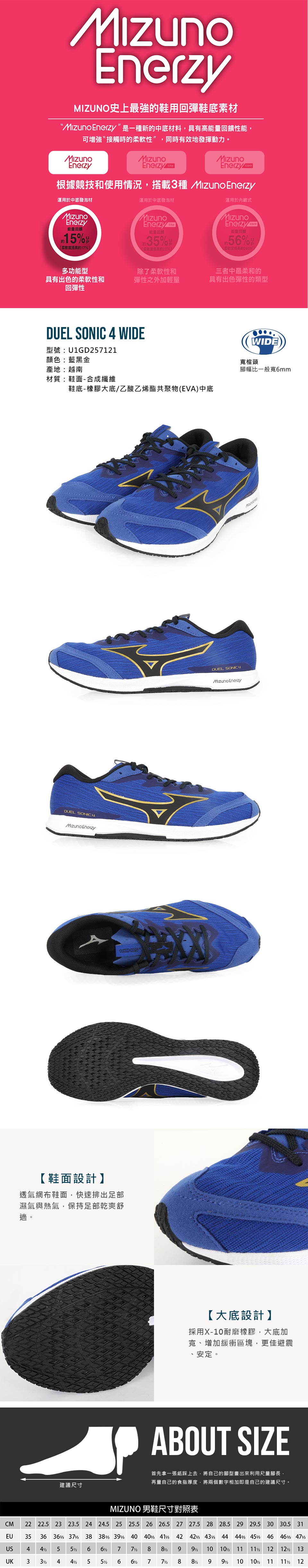 MIZUNO 男款路跑鞋-3E @DUEL SONIC 4 WIDE@ U1GD257121