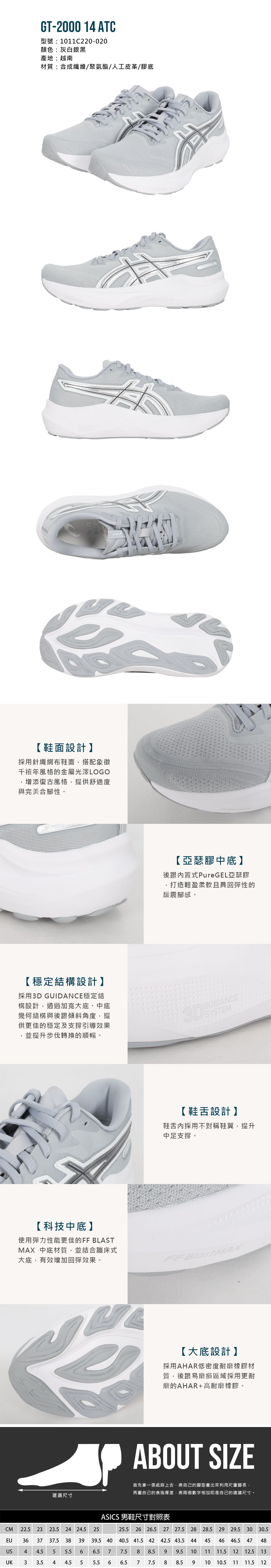 ASICS 特定-男款復古支撐慢跑鞋  @GT-2000 14 ATC@ 1011C220-020 - 灰白銀黑