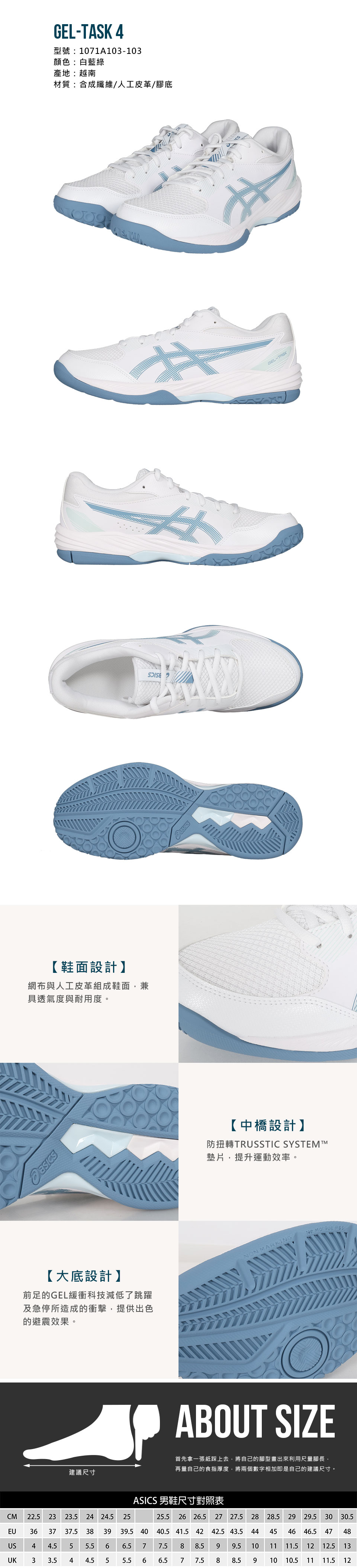 ASICS 男款排球鞋  @GEL-TASK 4@ 1071A103-103 - 白藍綠