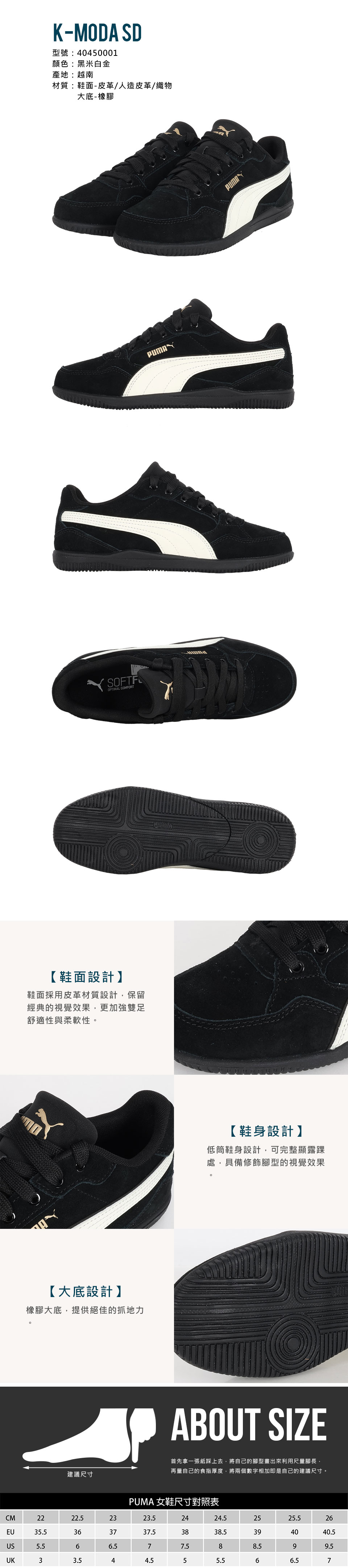 PUMA 女款網球運動鞋  @K-Moda SD@ 40450001 - 黑米白金