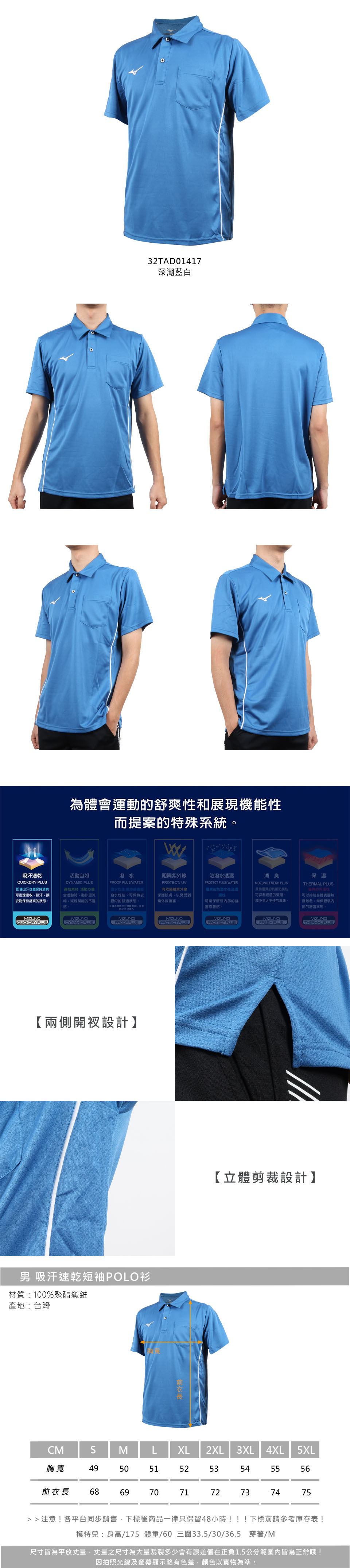 MIZUNO 男款吸汗速乾短袖POLO衫  32TAD01417 - 深湖藍白