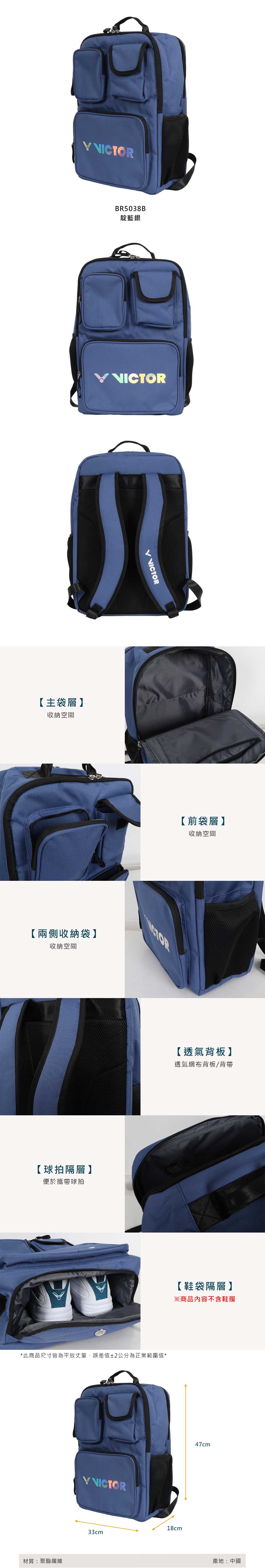 VICTOR 後背包  BR5038B - 靛藍銀