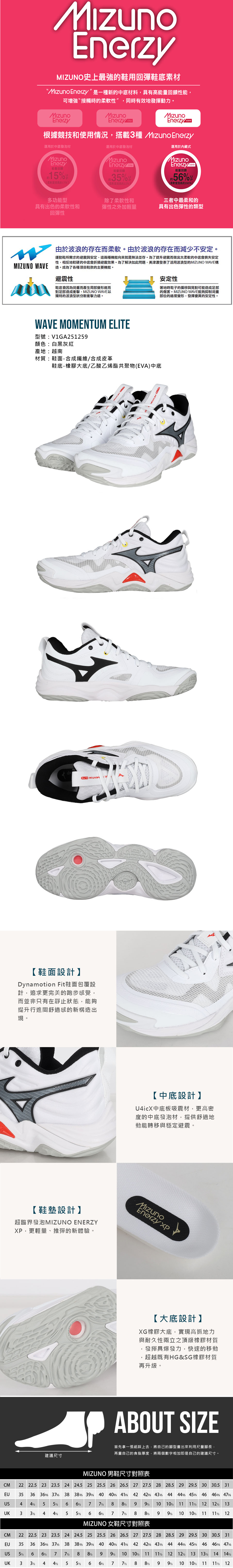MIZUNO 男女款排球鞋  @WAVE MOMENTUM ELITE@ V1GA251259 - 白黑灰紅