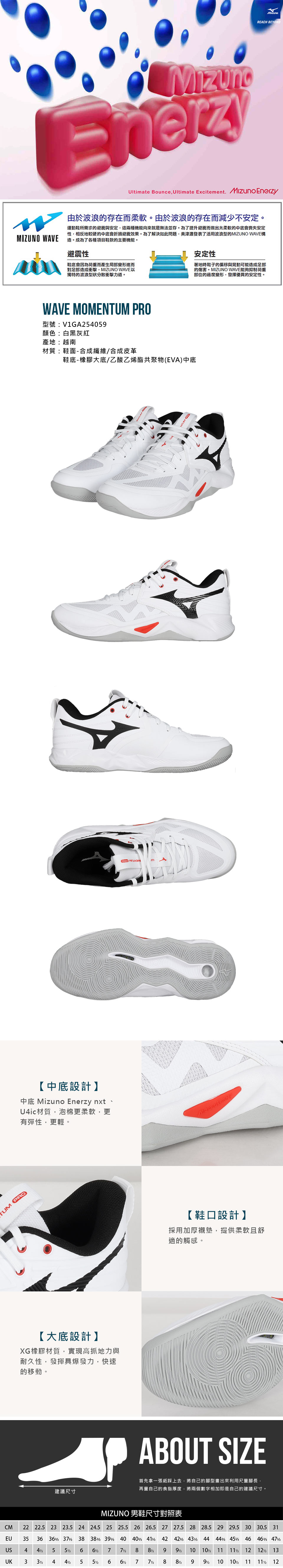 MIZUNO 男款排球鞋  @WAVE MOMENTUM PRO@ V1GA254059 - 白黑灰紅