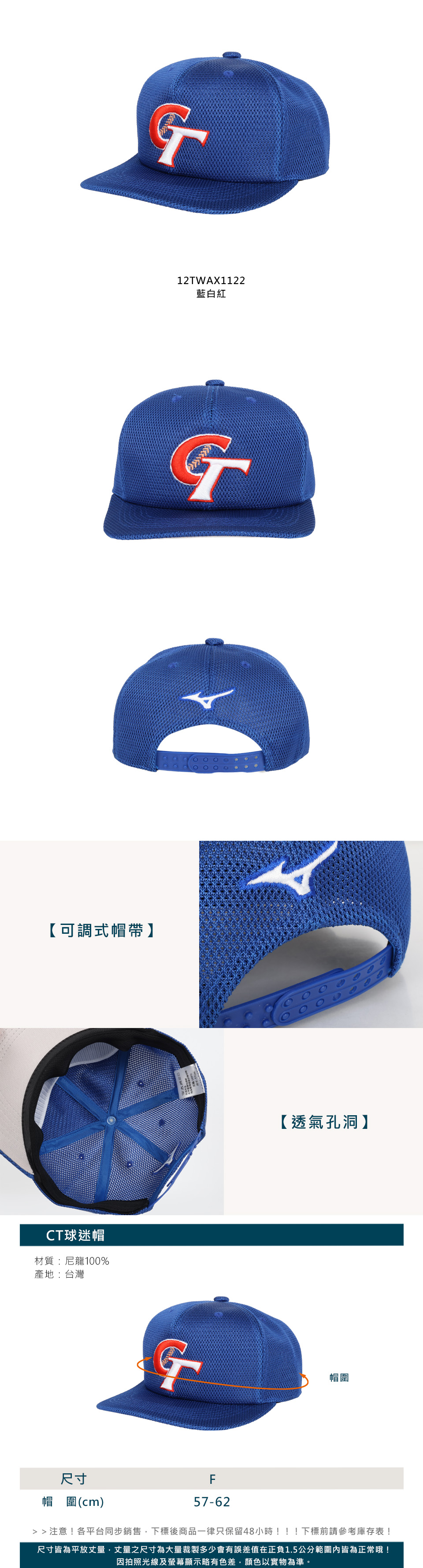 MIZUNO CT球迷帽  12TWAX1122 - 藍白紅