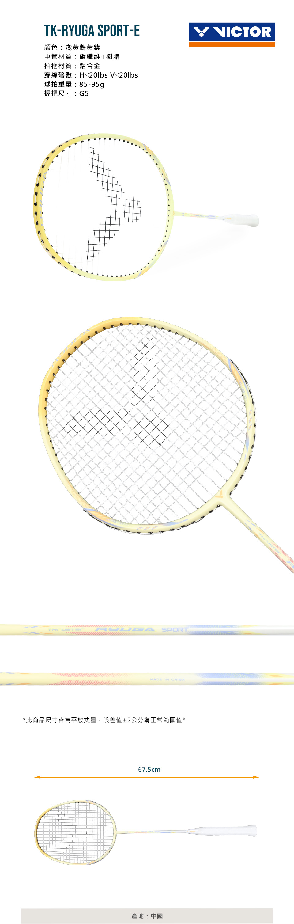 VICTOR 突擊羽球拍  TK-RYUGA SPORT-E - 淺黃鵝黃紫