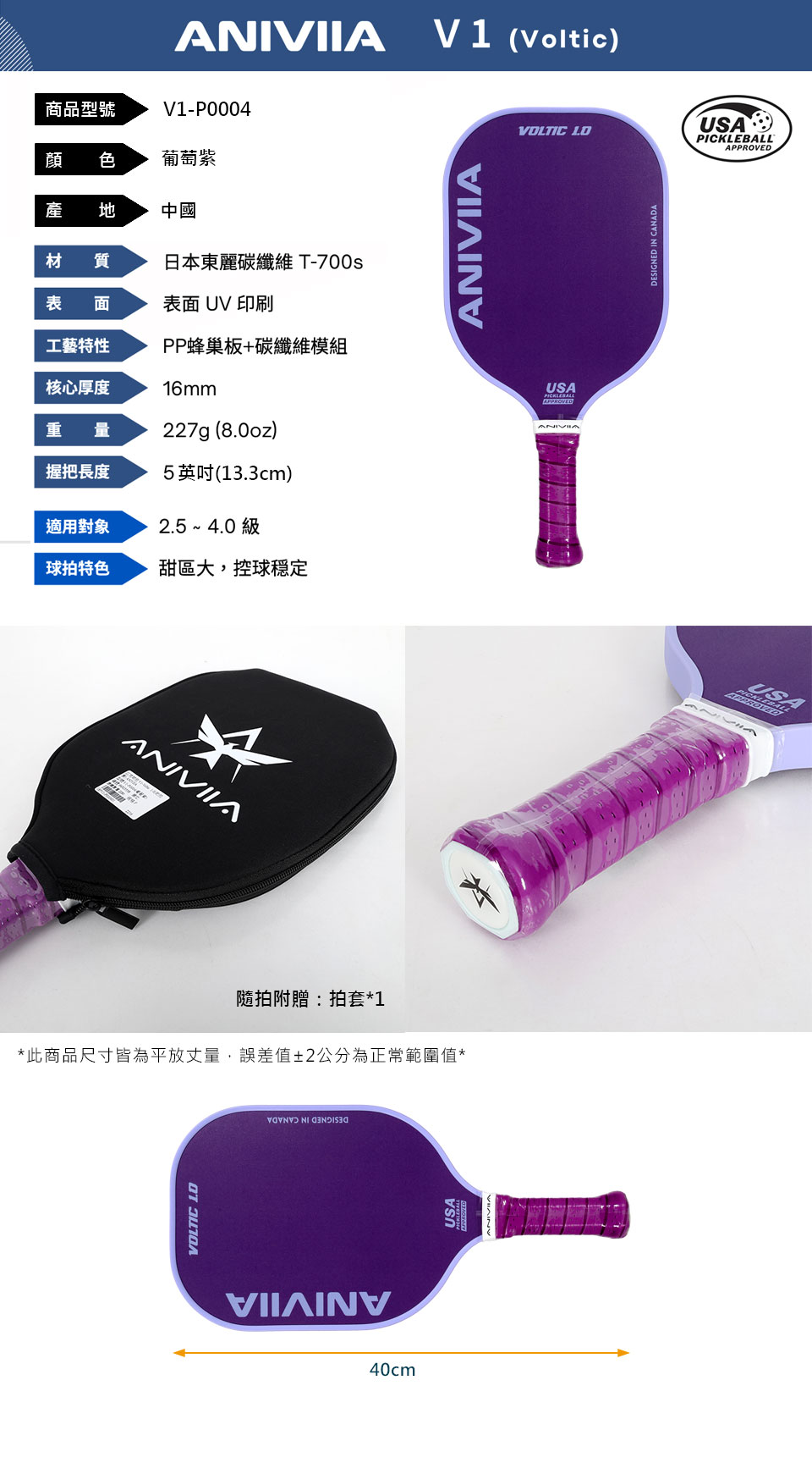 ANIVIIA 匹克球拍 V1-Voltic 1.0(附拍套)  V1-P0004 - 葡萄紫