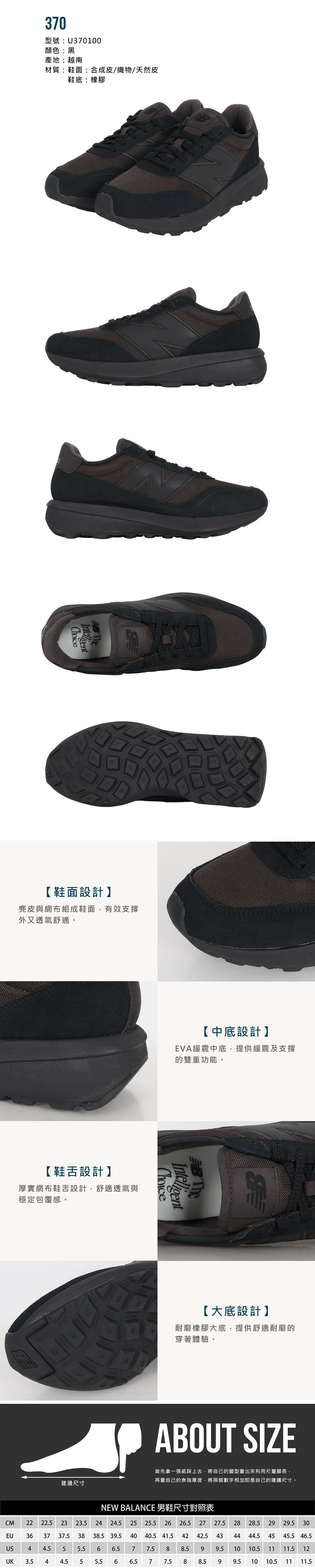 NEW BALANCE 男款復古休閒鞋  @U370@ U370100 - 黑